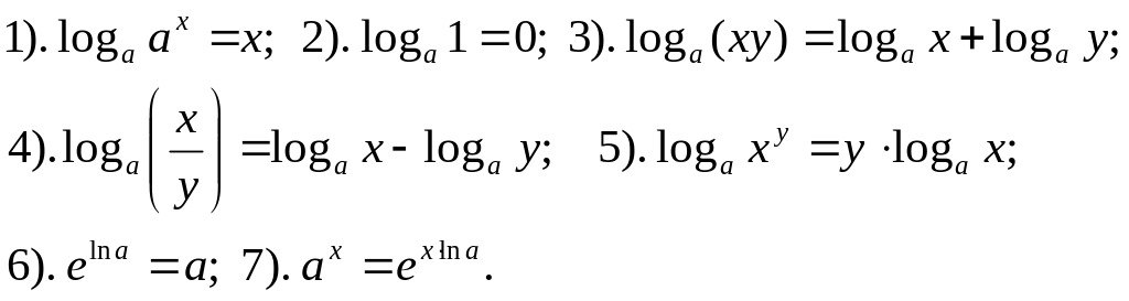 II. Операции с логарифмическими функциями: