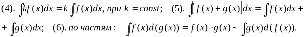 V. Свойства неопределенных интегралов: