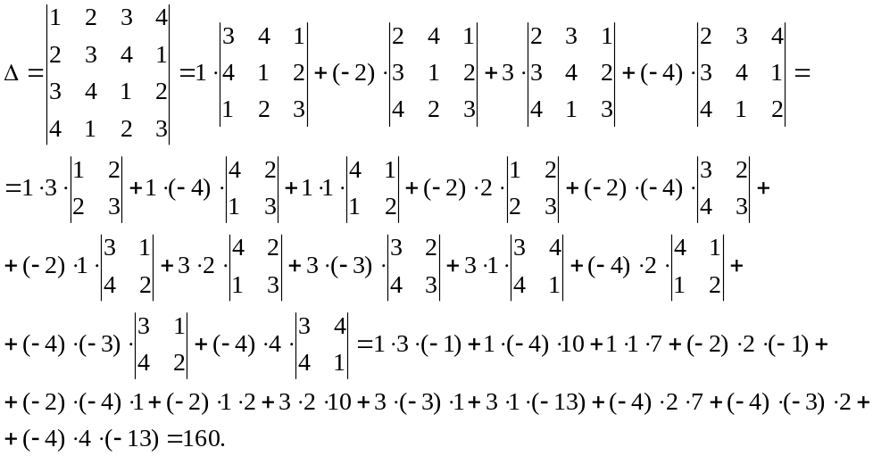 Теперь вычислим определитель Δ матрицы А: