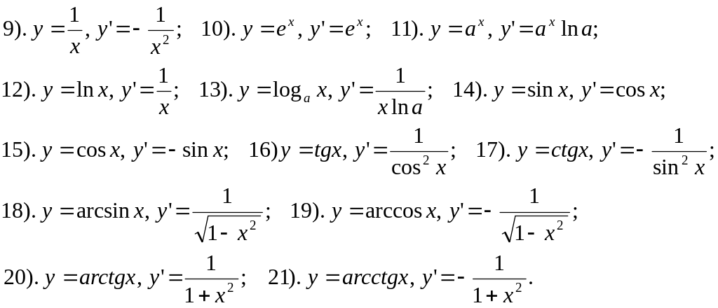 IV. Таблица производных: