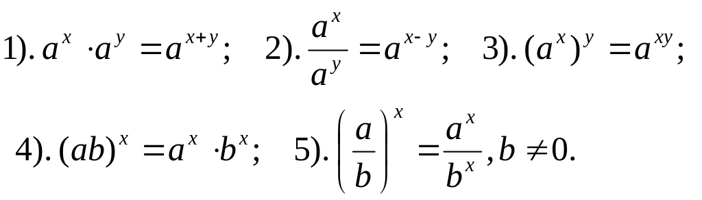 I. Операции с показательными функциями: