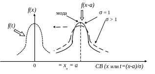 Так как у плотности вероятности f(x) есть максимум, то соответствующее этому максимуму наиболее вероятное значение СВ называют модой.