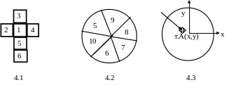 1. Числа от 1 до 6, нанесенные на гранях куба (гексаэдра) являются примером дискретной случайной величины, если куб использовать в качестве игральной кости (рис.4.1 представляет развертку куба на плоскости).