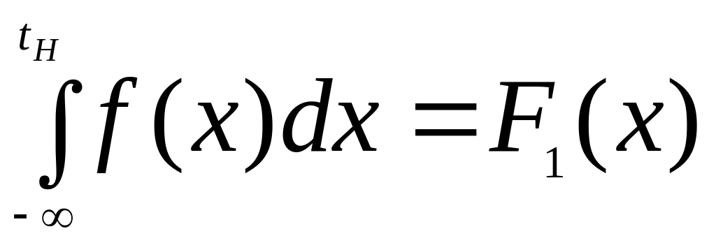 и , что геометрически представляет собой площади под теоретической кривой распределения f(x) в пределах от – ∞ до правых границ, соответственно, tН и tВ ;