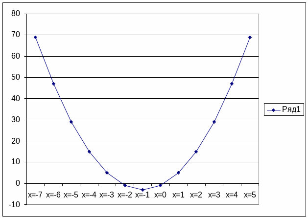 Из свойства симметричности графика (рис.8) следует, что минимальное значение функция принимает при x = (x2 + x1 )/2 = – 1, что хорошо подтверждается на графике. Кривая линия, графически представляющая квадратичную функцию, называется параболой.
