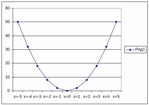 Рис. 7. График квадратичной зависимости при а = 2, b = 0, c = 0
