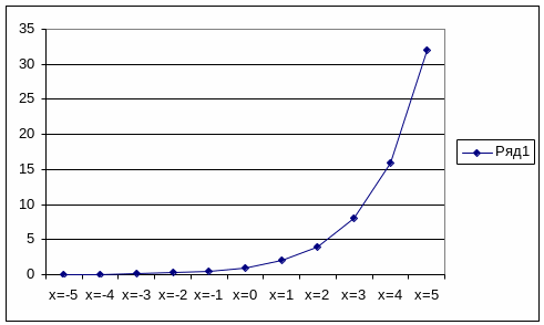 С показательными функциями часто приходится иметь дело, рассматривая процессы эволюции, накопления, роста, распада и т.п., с чем мы встретимся несколько позже. Особенно важны при описании этих процессов частные случаи показательной функции, когда в качестве величины a берется иррациональное число е ≈ 2,718282… (основание натуральных логарифмов). Функция вида y = еkx называется экспоненциальной и в одну строку обозначается y = еxp[kx]. График этой функции называют экспонентой. Построим график показательной функции y = 2x с помощью таблиц ее значений: