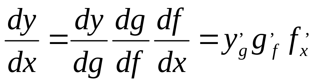 По ходу выполнения действий для предыдущего правила был использован прием поиска производной от функции u, которая сама сложным образом зависит от аргумента x. Можно в общем виде записать, что u зависит от функции g, которая зависит от переменной x, то есть: u(g(x)) . Правило дифференцирования такой функции, которая называется сложной, очевидно из тех действий, которые мы уже произвели в предыдущем примере.