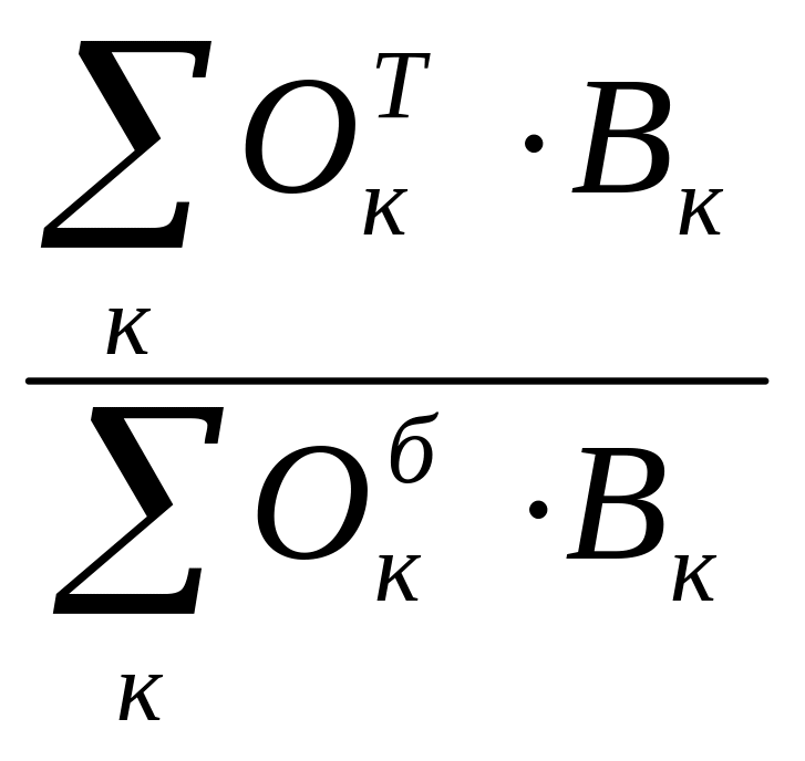 где ОкТ –число осужденных за преступления к-й степени тяжести в текущем периоде, Окб – число осужденных за преступления к-й степени тяжести базового периода, с которым производится сравнение, Вк – веса тяжести преступлений, выраженные в годах лишения свободы.