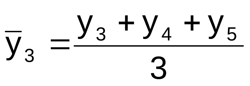 Метод скользящей средней заключается в том, что вычисляется средний уровень из определенного числа первых по счету уровней, затем из такого же числа уровней, но начиная со второго по счету далее - начиная с третьего и т. д. Таким образом, средняя как бы «скользит» по ряду динамики, передвигаясь на один уровень. Например,