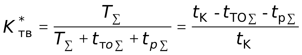Відзначимо, що при розрахунку коефіцієнта технічного використання необхідно враховувати витрати часу на всі види технічного обслуговування й ремонтів (планових і непланових).