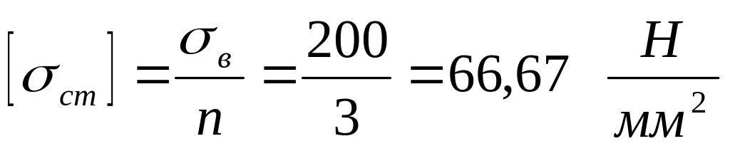 Вычислим допускаемые напряжения в опасном сечении из условия статической прочности, приняв коэффициент запаса n=5 (принимается от 3 до 5);