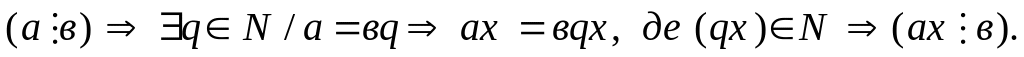 Якщо кожне з натуральних чисел а1;…; ап ділиться на натуральне число в, то їхня сума а1 +…+ ап теж ділиться на в.