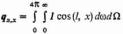 где I0-интенсивность лучистого потока, входящего в рассматриваемый объем по направлению l; В-собственное уд. излучение среды; k и x-уд. коэффициенты ослабления и собств. излучения в-ва, отнесенные к единице расстояния в направлении l; s- расстояние от места входа лучистого потока до рассматриваемой произвольной точки. Первое слагаемое для I учитывает поглощение входящего внеш. излучения I0, а второе-поглощение собств. излучения среды. Полное значение плотности лучистого потока, поступающего в данную точку пространства по всем направлениям и по всему диапазону частот, определяется интегрированием выражения для I по пространств. углу в пределах 0-4 и по частотам от 0 до , с учетом зависимостей коэффициентов k и к от частоты излучения (здесь и далее, напр., для координаты х):
