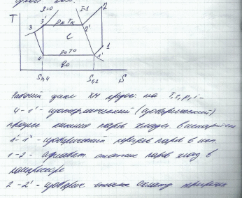Идеальный обратный холодильный цикл – теоретический цикл Карно. Процессы протекают в области влажного пара хладагента при постоянной температуры охлаждения и окр. среды идеальный теплообмен между ними и хладагентом.