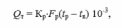 qб — расчётная мощность удельных тепловыделений плодоовощей при температуре 25оС (в среднем принять qб = 0,4 кВт/т);