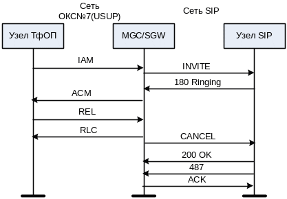 7. При приеме сообщения REL до заключительного ответа на INVITE шлюз посылает сообщение CANCEL в направлении узла SIP.