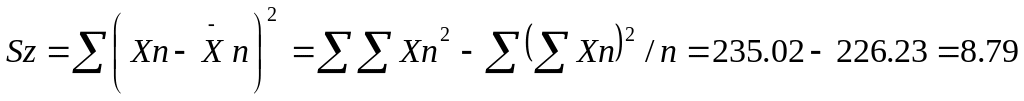 Розрахунок показника сили впливу за відношенням варіанс.