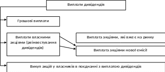 Складовою дивідендної політики підприємства є вибір найприйнятнішої для всіх заінтересованих сторін форми виплати дивідендів. Загалом дивіденди можуть виплачуватися в таких формах: