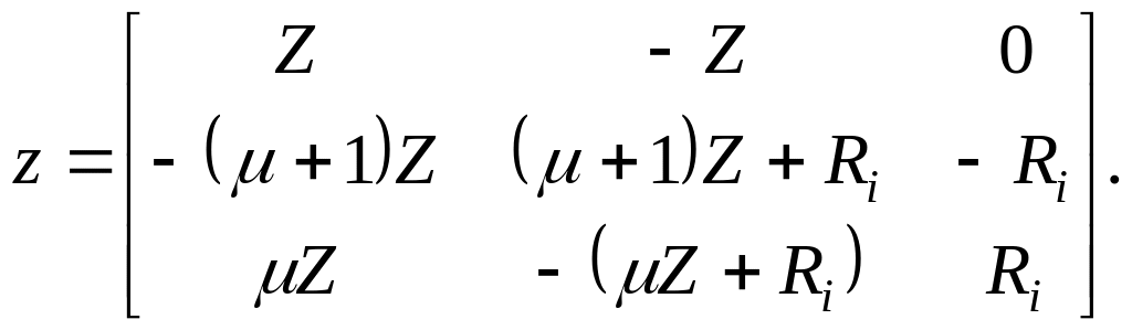 Так как ic=0, уравнение (1.22) нельзя разрешить относительно напряжений и матрица сопротивления идеального триода не существует. Однако, если рассматривать идеальный триод вместе с сеточным сопротивлением Z (рис. 1.12,б), то матрицу сопротивления запишем в виде.
