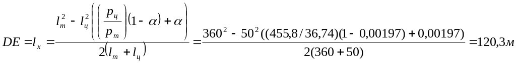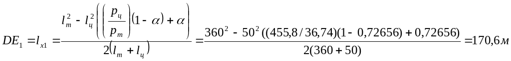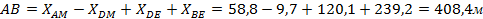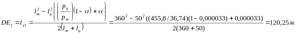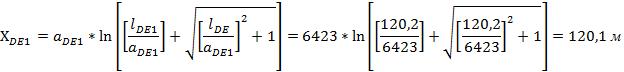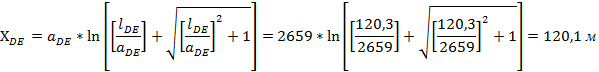 Длина участка DE определяется по формуле: