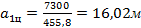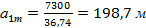 =7300/36,74=198,6м