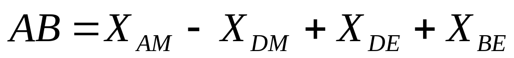 Применяем те же методы расчета, что и в предыдущем случае. Рассчитываем четыре цепные линии: АМ1, DM1, DE1 и ВЕ1.
