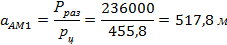 236000/455,8=517,8м