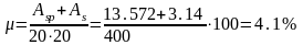 Определяем требуемую площадь сечения растянутой арматуры с учетом коэффициента условия работы арматуры γb2=η=1.15