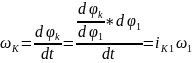 т.е. угловая скорость к-го звена равна произведению аналога угловой скорости этого звена на угловую скорость звена приведения 1.