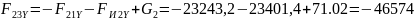 Реакция определяется из условия равновесия проекций сил, действующих на группу (2,3), на ось X: