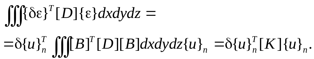 В этом соотношении является матрицей, которая содержит информацию о поведении элементарного участка деформируемой системы. Это матрица жесткости элемента, являющаяся основной характеристикой системы в МКЭ.