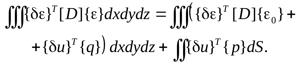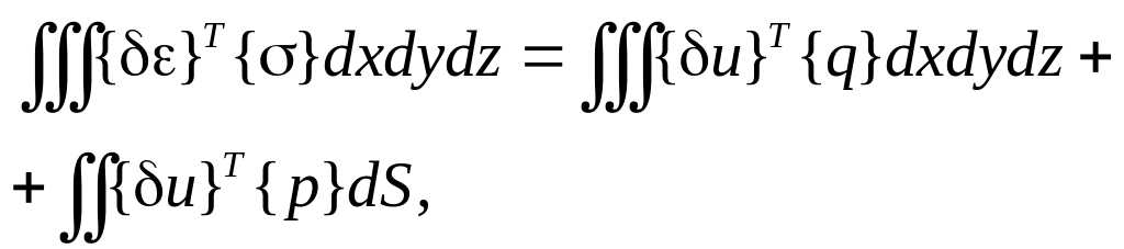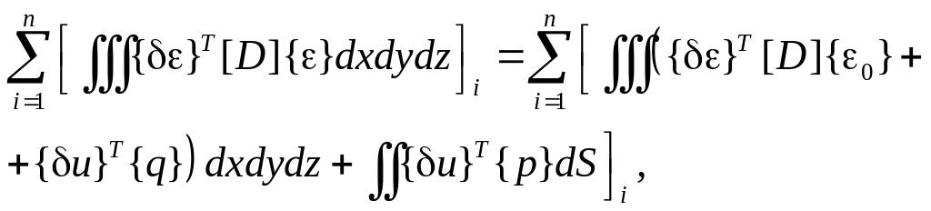 Выражение (1.5) справедливо как для отдельного элемента, так и для всей системы в целом. Будем полагать, что оно относится к каждому элементу и интегрирование ведется по объему и поверхности элемента. Формулировка принципа возможных перемещений для системы элементов в целом выглядит так: