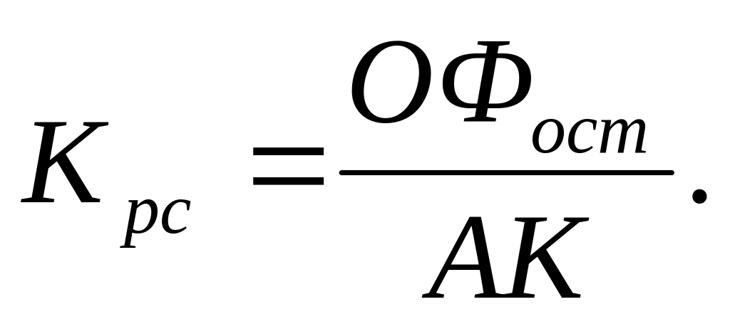 Коэффициент реальной стоимости основных фондов в имуществе организации (Крс) – отношение среднегодовой остаточной стоимости основных фондов (ОФост) к среднегодовой стоимости активов (АК):