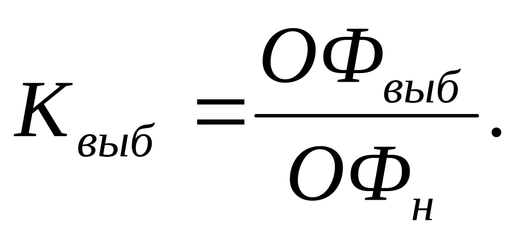 Коэффициент выбытия рассчитывается как отношение стоимости выбывших основных фондов (ОФвыб) к стоимости основных фондов на начало периода (ОФн):