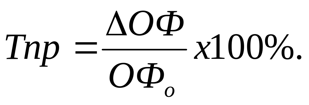 Оценка изменения стоимости основных фондов с учетом темпа роста реализованной продукции. Расчет относительного отклонения основных фондов (ОТотн), используемых в производственной деятельности, проводят с учетом темпа роста объема производства, что позволяет оценить эффективность использования основных средств предприятия. Для расчета используют формулу: