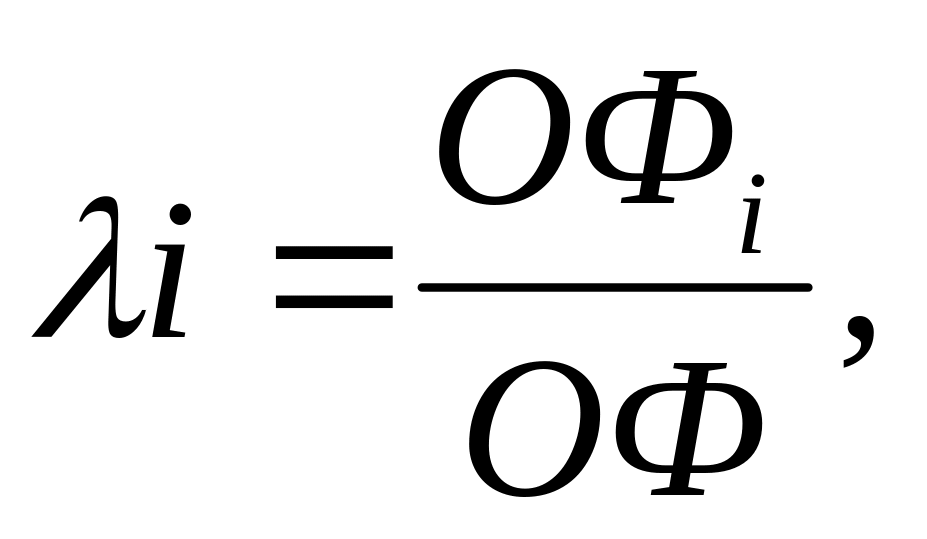 Доля каждой составляющей основных фондов (λi) в общей совокупности определяется с помощью вертикального анализа: