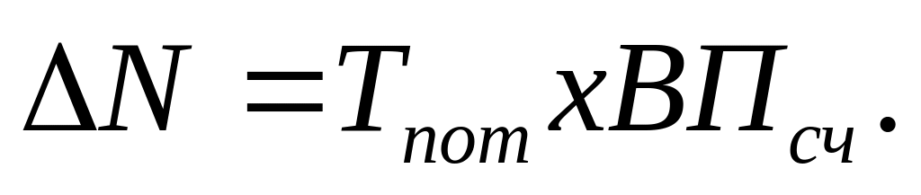 Снижение потерь рабочего времени является одним из резервов увеличения выпуска продукции. Для расчета прироста объема продукции, которую предприятие недополучило из-за потери рабочего времени, пользуются формулой: