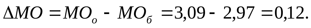 Эффективность использования материальных ресурсов характеризуется показателем материалоотдачы (МО) - отношение выручки от продаж (В) к затратам на материалы (Зм):