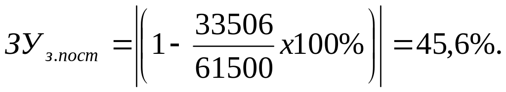 Критический объем постоянных затрат – 61 500 тыс. руб. Запас устойчивости по этому фактору составит: