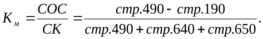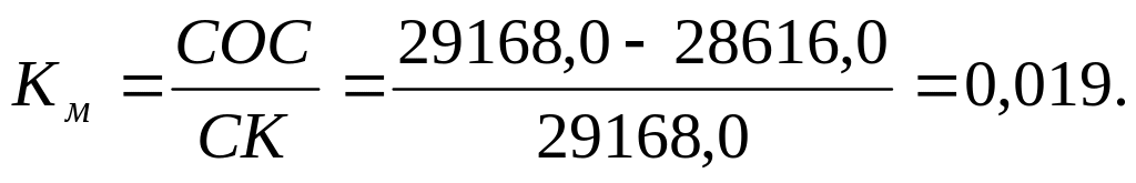 Коэффициент маневренности собственных оборотных средств (Км) определяет, какая часть собственного капитала используется для финансирования текущей деятельности, а какая часть - внеоборотных активов.