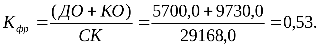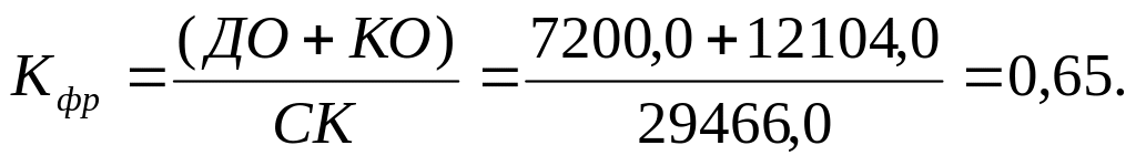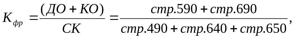 Коэффициент финансового риска (Кфр) равен отношению величины обязательств предприятия к величине его собственных средств: