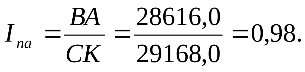 Индекс постоянного актива (Iпа) характеризует долю основного капитала (внеоборотных активов) в собственном капитале. Индекс постоянного актива вычисляется по следующей формуле: