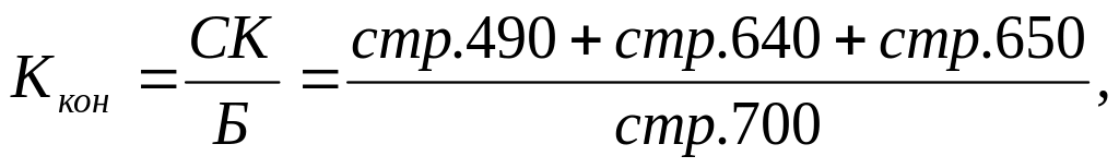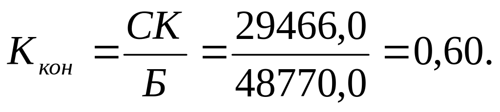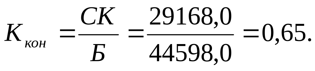 Коэффициент концентрации собственного капитала (Kкон) характеризует степень финансовой независимости или автономии от внешнего капитала, а также долю собственников предприятия в общей сумме средств, вложенных в него.