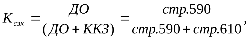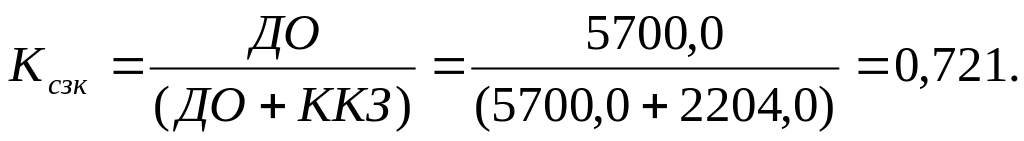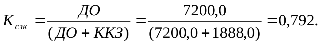 Дополнением к этому показателю является коэффициент концентрации заемных средств и кредитов (Kзс.к), их сумма равна 1 или 100 %.