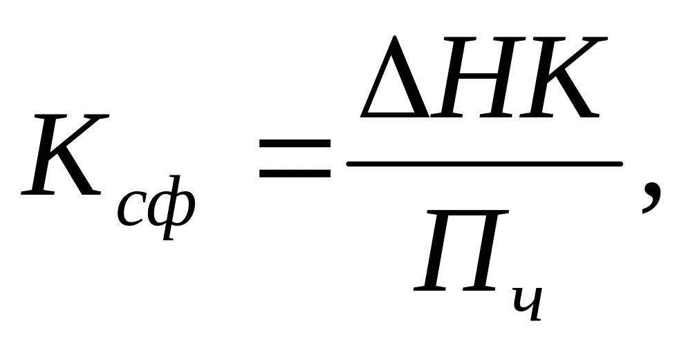 Коэффициент самофинансирования (Ксф) показывает, какая часть чистой прибыли направлена на его развитие, т.е. на увеличение накопленного капитала. Коэффициент самофинансирования рассчитывается следующим образом: