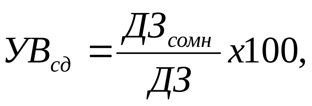 Удельный вес сомнительных долгов в составе дебиторской задолженности (УВсд) в общем объеме оборотных средств рассчитывается следующим образом