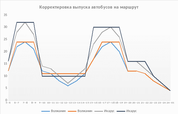 Корректировка «пиковых» зон проводится в соответствии с возможностью АТП по выпуску автобусов, т.е. с учетом коэффициента дефицита автобусов