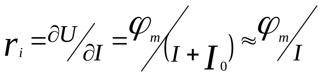 Значение тока I измеряется в мА, сопротивление ri в Ом. С ростом прямого тока дифференциальное сопротивление падает. Дифференциальное сопротивление перехода при его обратном включении значительно больше, чем при прямом. При |-Uобр| >> т сопротивление ri можно считать бесконечно большим.