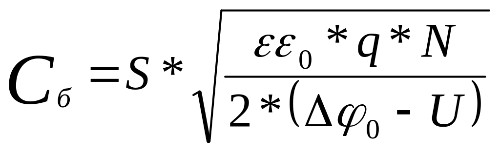 Плоскостной p-n переход можно рассматривать как две проводящие пластины, заряды которых равны, противоположны по знаку и разделены средой со свойствами, близкими к диэлектрику, т.е. его можно рассматривать как плоский конденсатор.